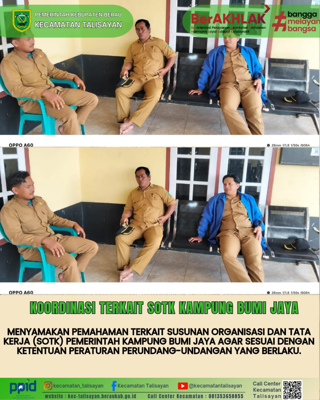 Posted by Hari Wibowo KOORDINASI TERKAIT PELAKSANAAN SOTK DI KAMPUNG BUMI JAYA 2025-09-30 14:48:05 Pemerintahan 0 TALISAYAN, 23 SEPTEMBER 2025 KOORDINASI TERKAIT PELAKSANAAN... Continue Reading