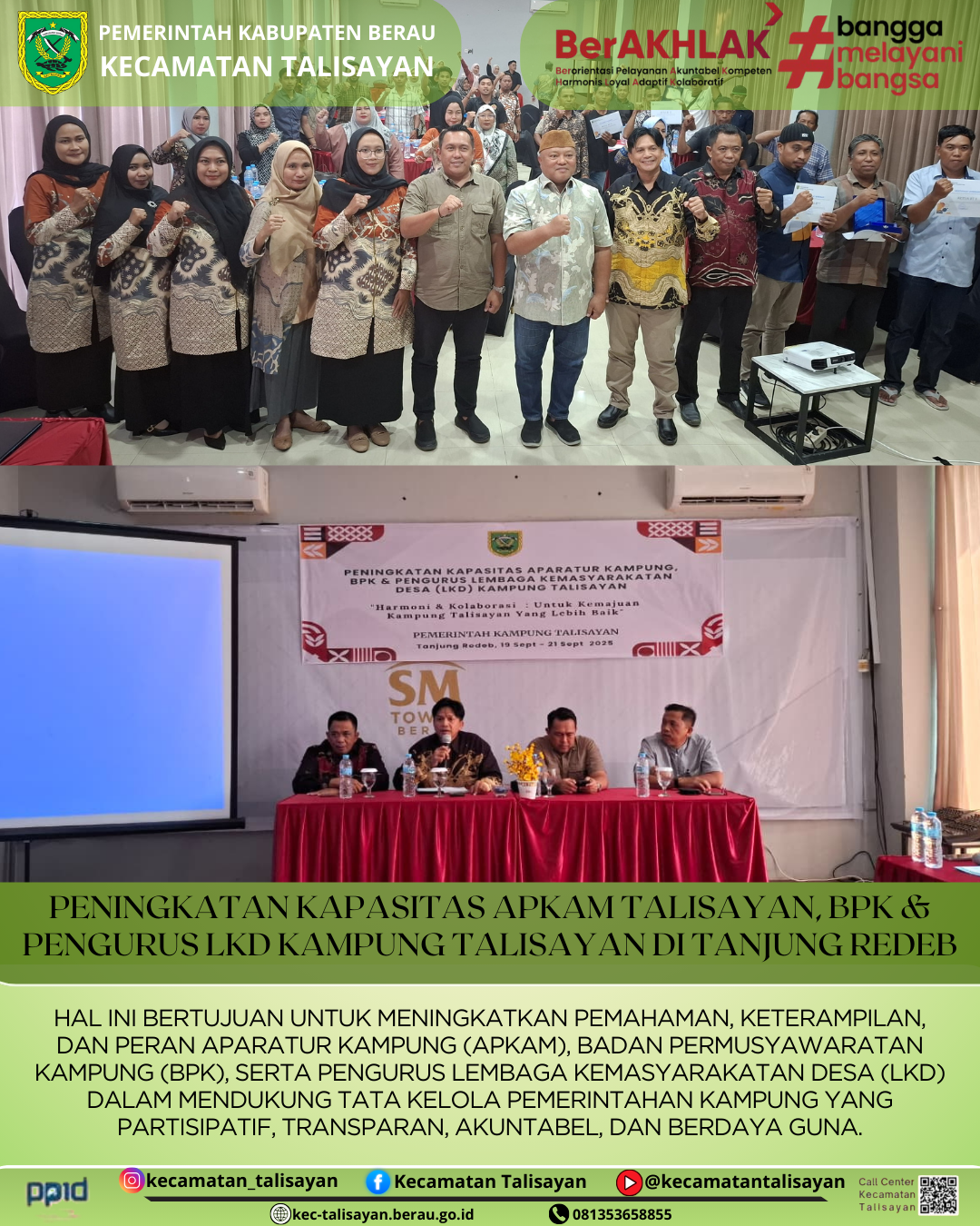 Posted by Hari Wibowo PENINGKATAN KAPASITAS APARATUR KAMPUNG TALISAYAN, BPK TALISAYAN, DAN LKD TALISAYAN TAHUN 2025 DI TAN 2025-09-23 10:44:02 Pemerintahan 0 TALISAYAN, 20 SEPTEMBER 2025 PENINGKATAN KAPASITAS APARATUR... Continue Reading