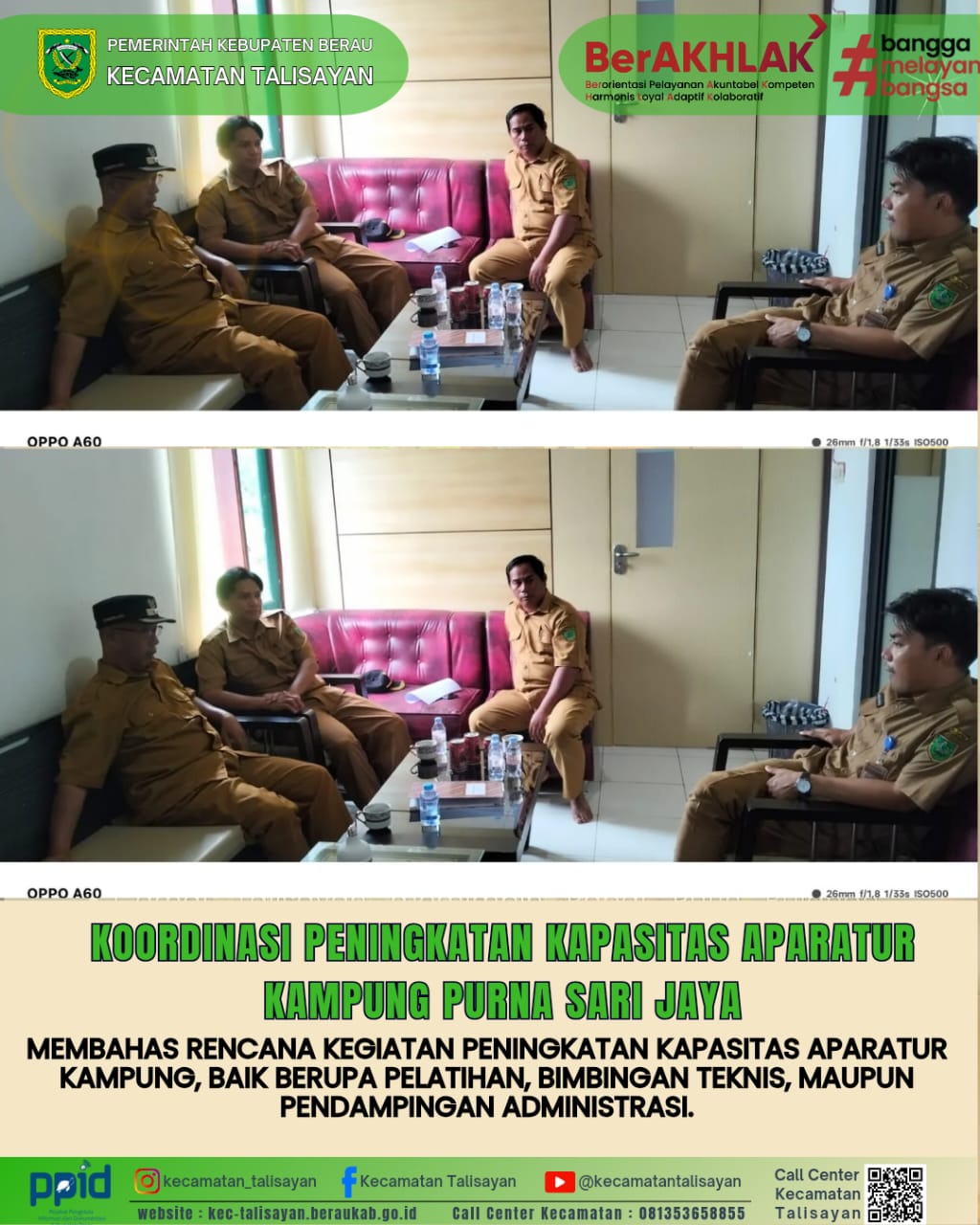 Posted by Hari Wibowo KOORDINASI PENINGKATAN KAPASITAS APARATUR KAMPUNG PURNA SARI JAYA 2025-09-30 15:00:02 Pemerintahan 0 TALISAYAN, 29 SEPTEMBER 2025 KOORDINASI PENINGKATAN KAPASITAS... Continue Reading