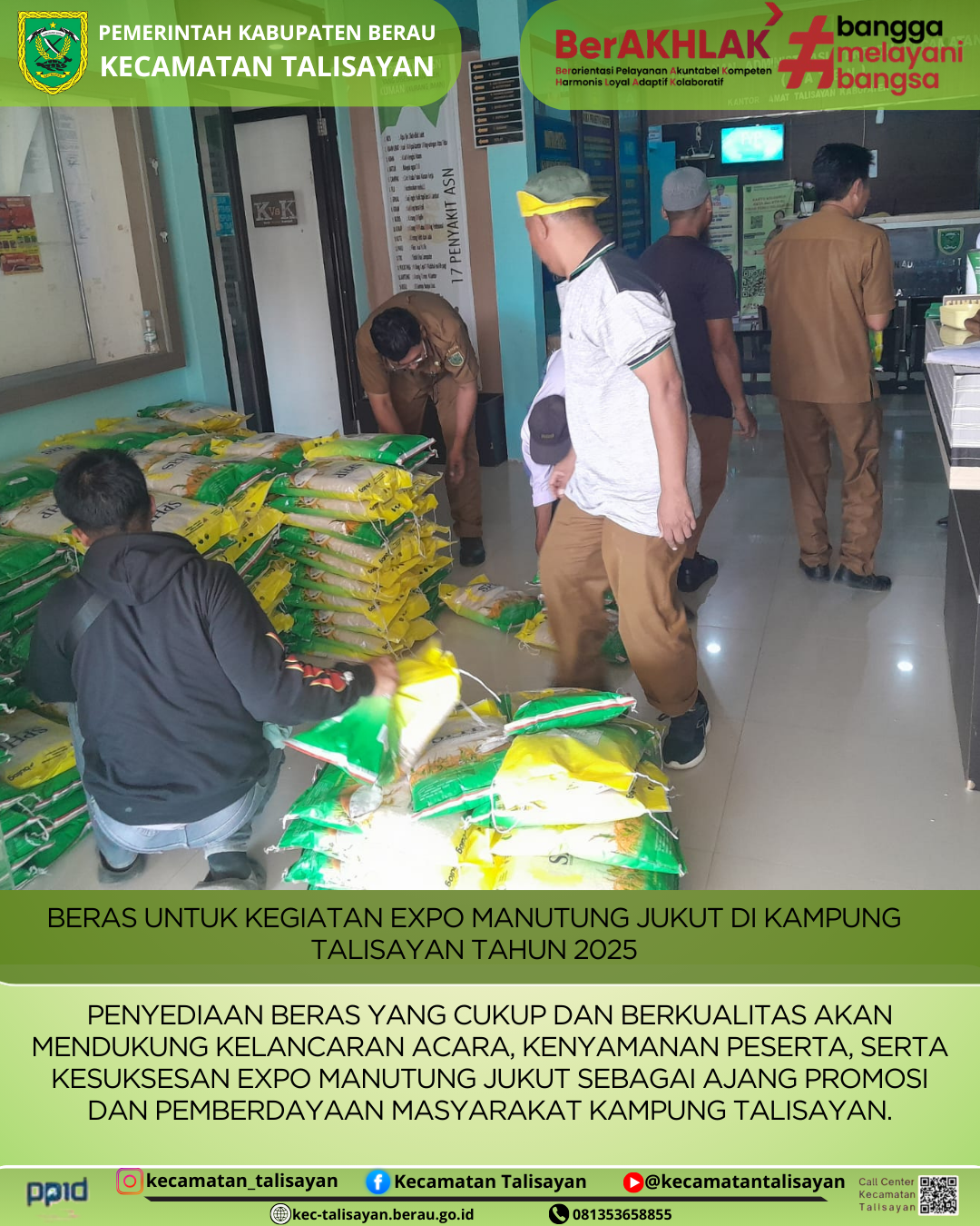 Posted by Hari Wibowo BERAS UNTUK DIPASARKAN DI EXPO MANUTUNG JUKUT DI KECAMATAN TALISAYAN TAHUN 2025 2025-09-23 14:15:51 Kesejahteraan Sosial 0 TALISAYAN, 23 SEPTEMBER 2025 BERAS UNTUK DIPASARKAN... Continue Reading