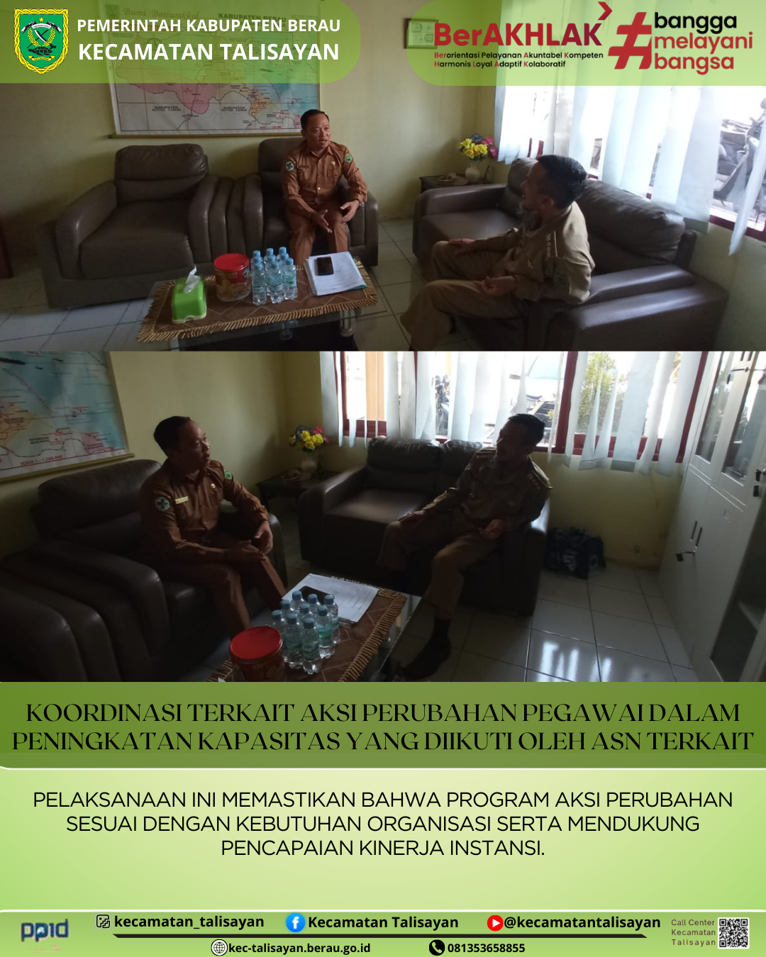 Posted by Hari Wibowo KOORDINASI TERKAIT AKSI PERUBAHAN PEGAWAI DALAM PENINGKATAN KAPASITAS YANG DIIKUTI OLEH ASN TERKAIT 2025-09-23 10:46:36 KEGIATAN 0 TALISAYAN, 22 SEPTEMBER 2025 KOORDINASI TERKAIT AKSI... Continue Reading
