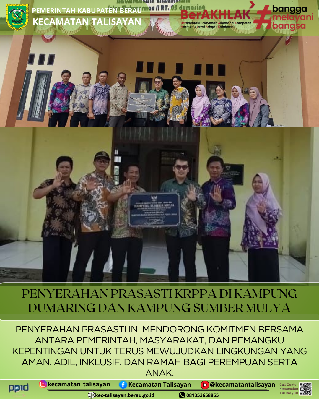 Posted by Hari Wibowo PENYERAHAN PRASASTI KRPPA DI KAMPUNG DUMARING DAN KAMPUNG SUMBER MULYA TAHUN 2025 2025-09-23 10:41:27 Kesejahteraan Sosial 0 TALISAYAN, 18 SEPTEMBER 2025 PENYERAHAN PRASASTI KRPPA... Continue Reading