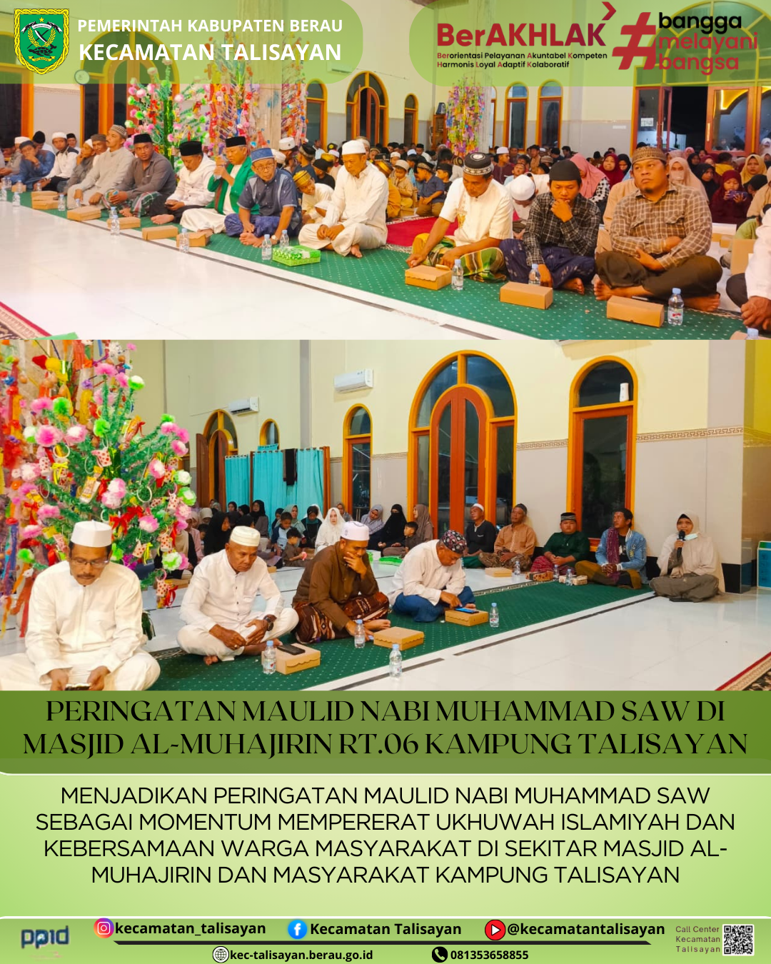 Posted by Hari Wibowo PERINGATAN MAULID NABI MUHAMMAD SAW DI MASJID AL-MUHAJIRIN RT. 06 KAMPUNG TALISAYAN TAHUN 2025 2025-09-23 10:42:37 KEGIATAN 0 TALISAYAN, 18 SEPTEMBER 2025 PERINGATAN MAULID NABI... Continue Reading